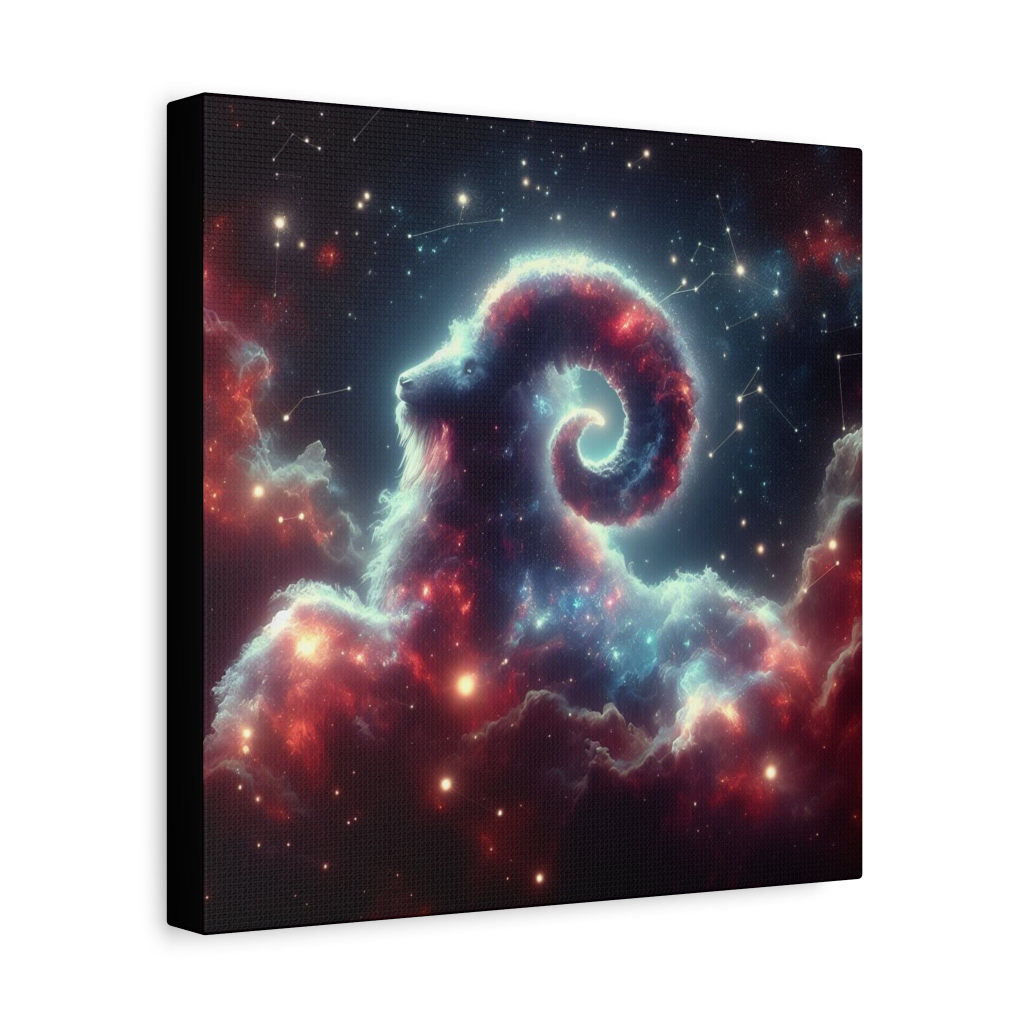 Celestial Ram Canvas Print, Astronomical Art for Home Decor, Unique Gift for Astrology Lovers, Cosmic Wall Art, Stretched Canvas