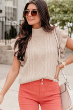 - Stay cozy and stylish in this Cable Knit Mock Neck Cap Sleeve Sweater