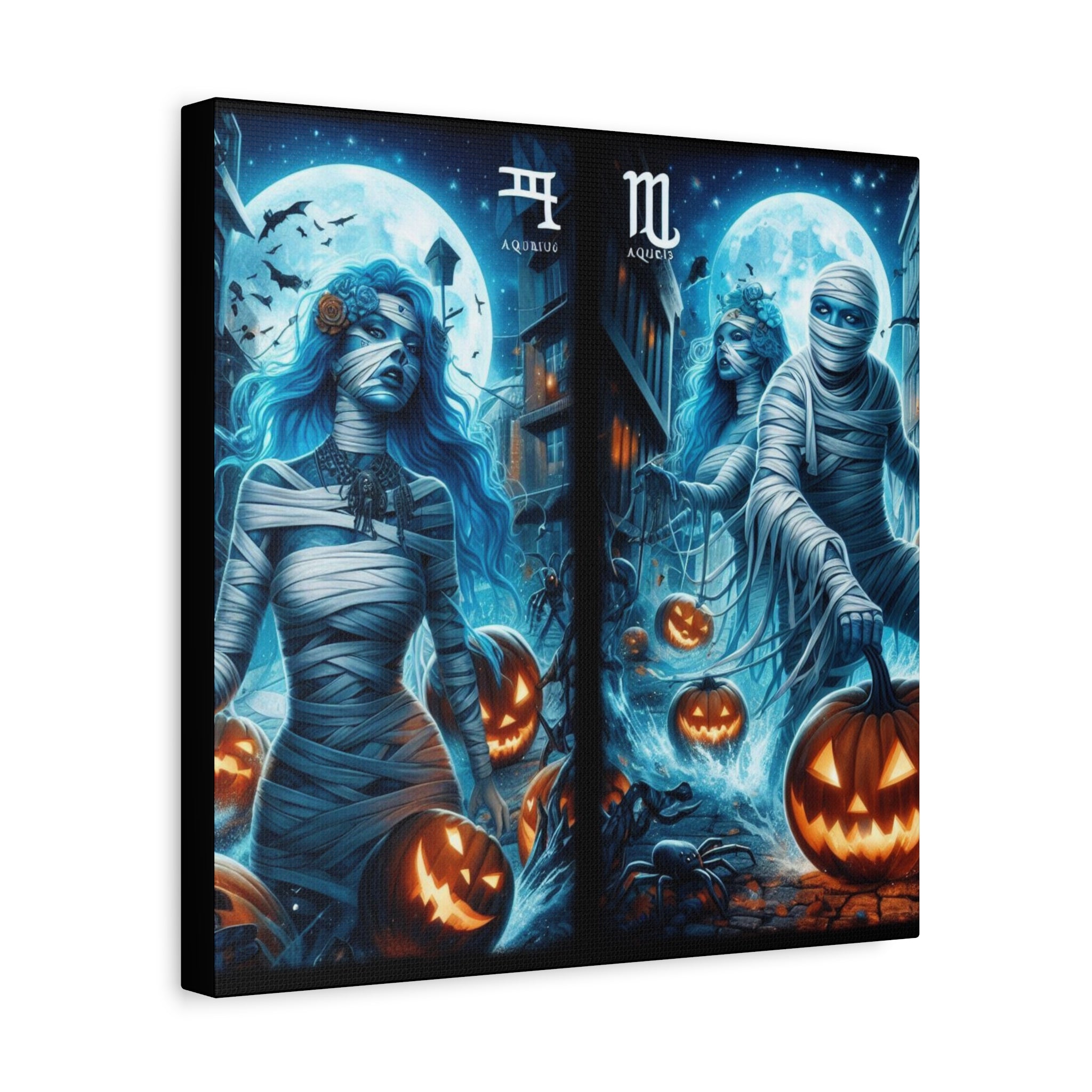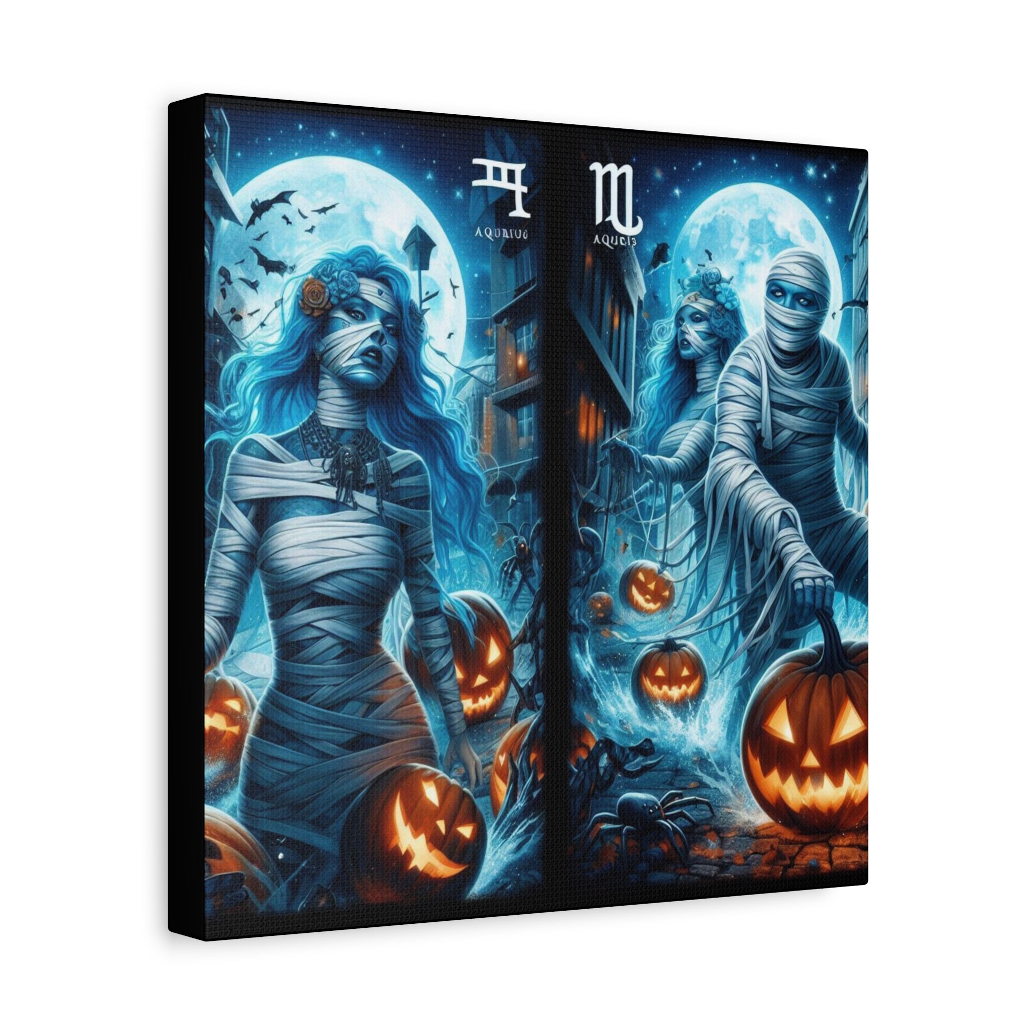 Aquarius Halloween Canvas Wall Art, Spooky Decor, Unique Gift, Home Decoration, Witch Theme Art, Perfect for Fall, Mysterious Vibe