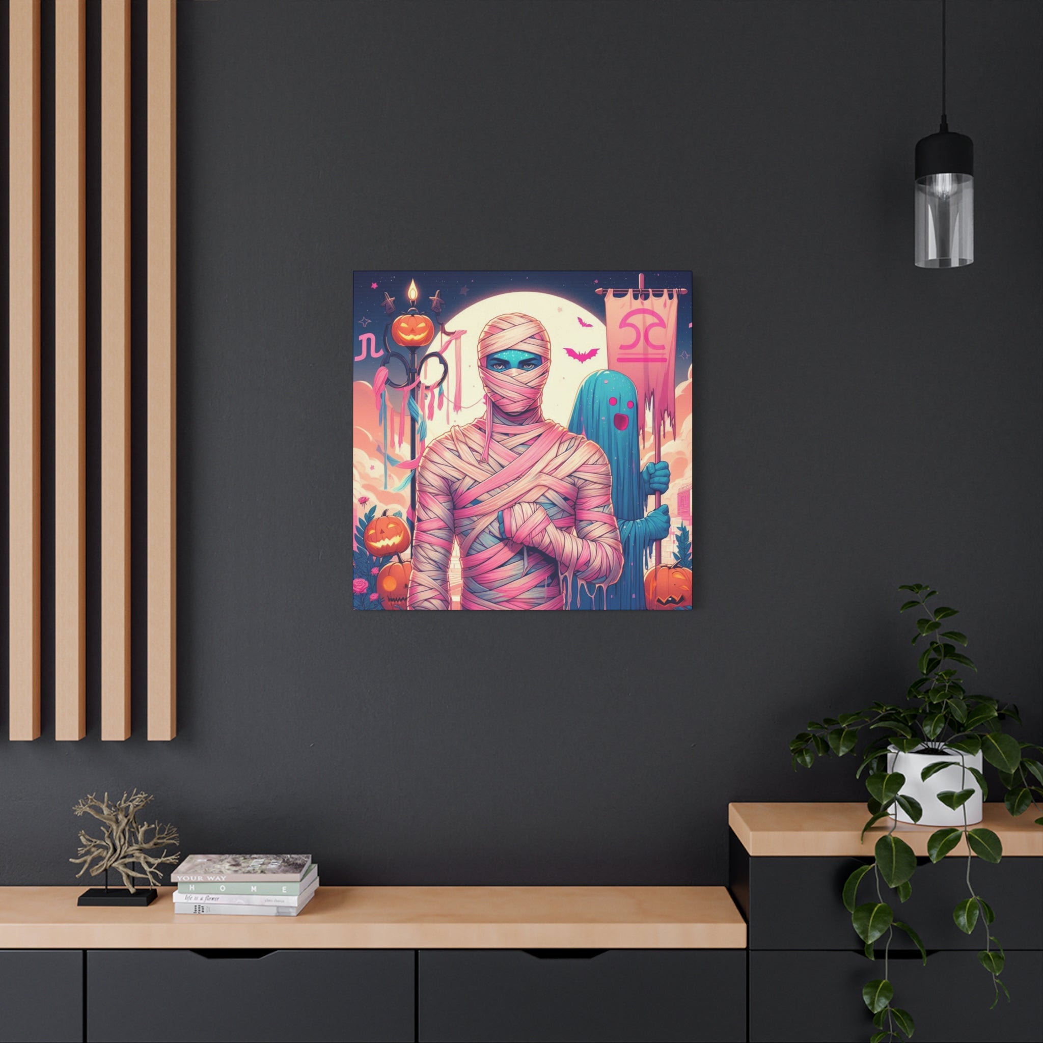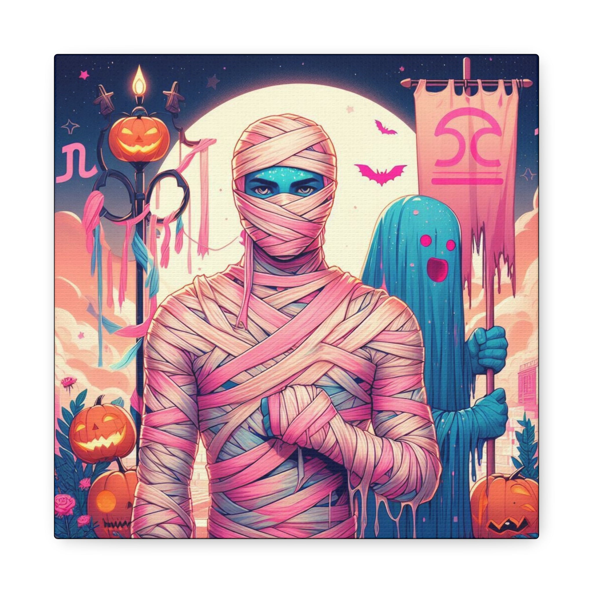 This Halloween Libra Astrology-themed Mummy canvas gives off a spooky yet artistic vibe, perfect for astrology enthusiasts and Halloween lovers. It can be a great addition to Halloween decor or a unique gift for someone born under the Libra sign.