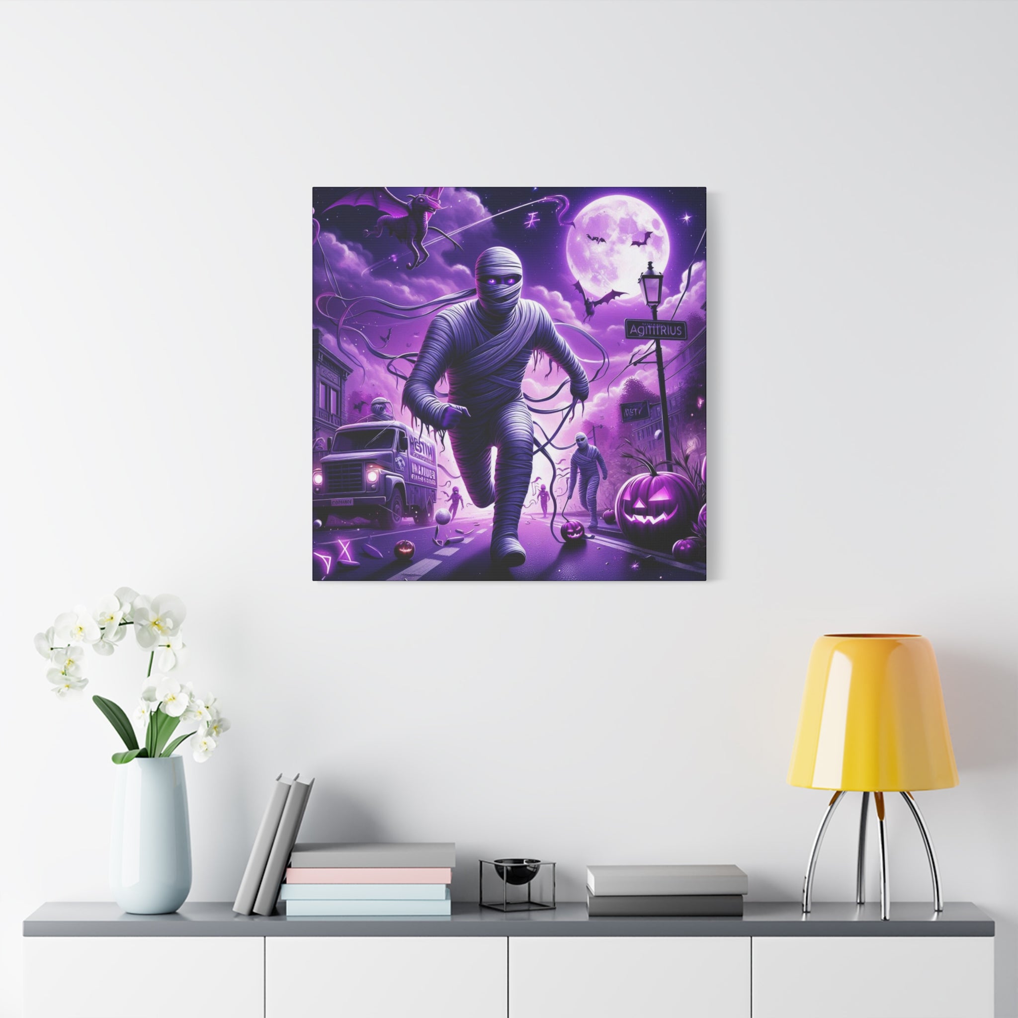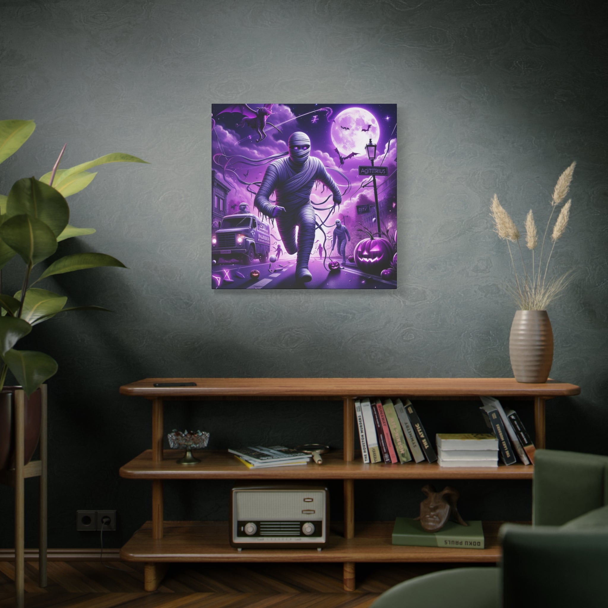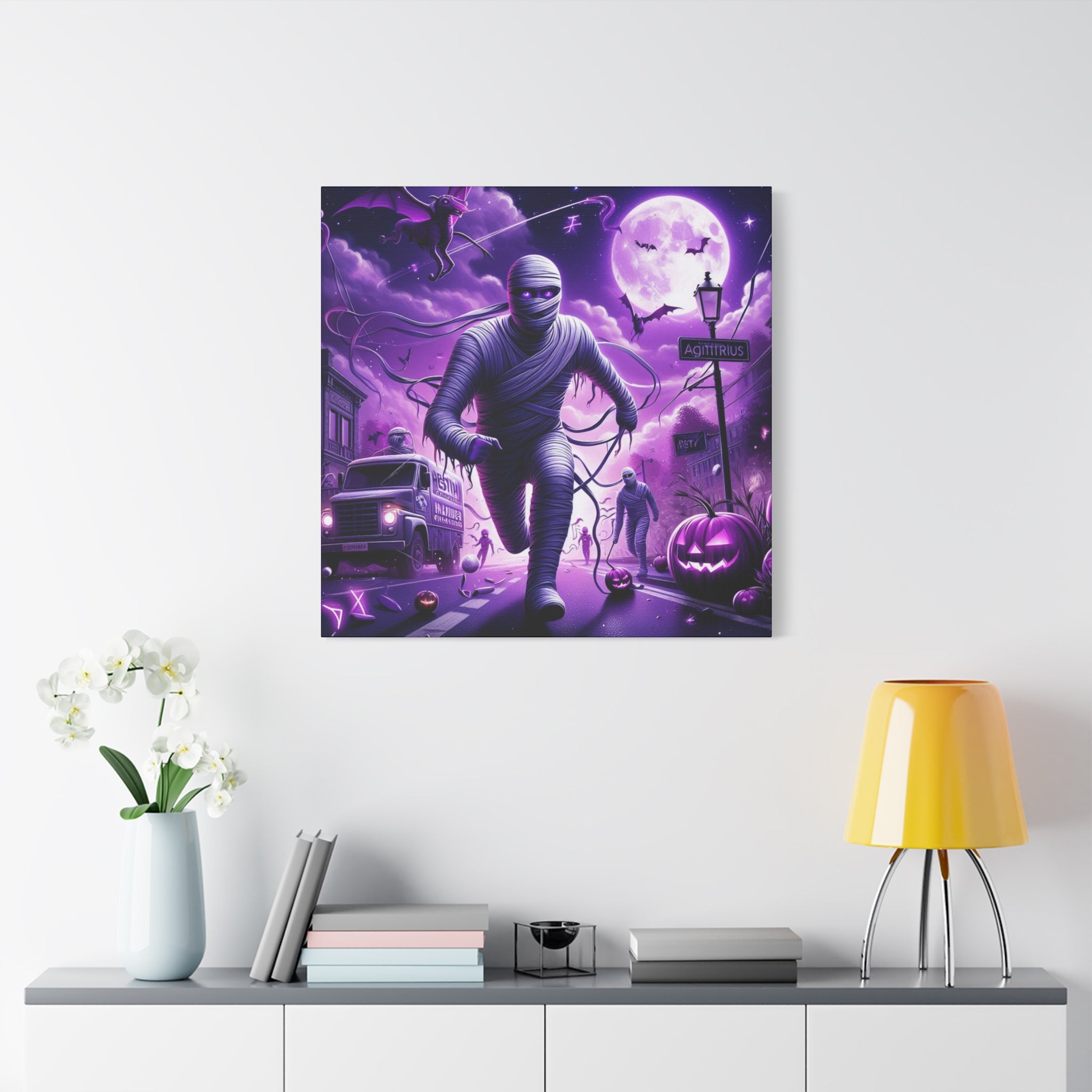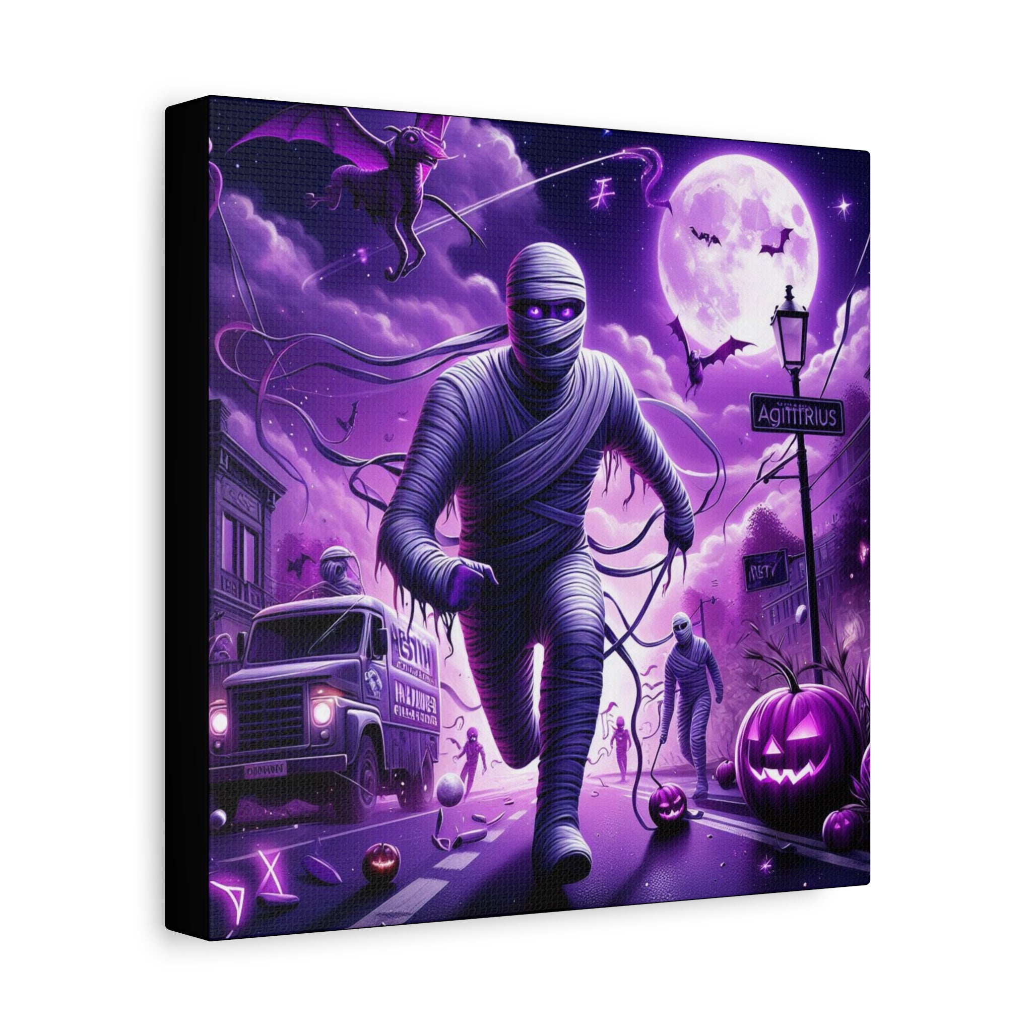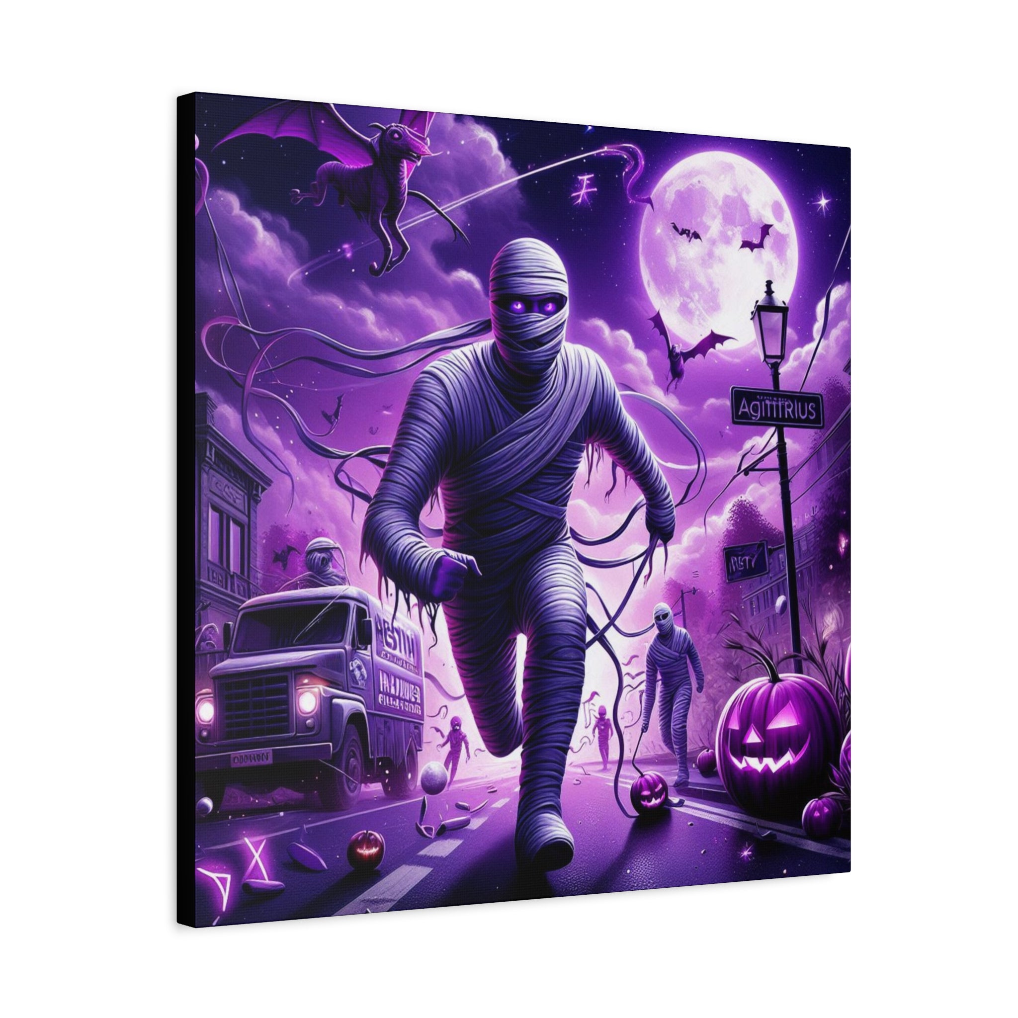 Halloween Sagittarius Astrology-themed Mummy canvas brings a spooky and mysterious vibe to your space. Perfect for astrology enthusiasts and Halloween lovers. Great for Halloween decor, astrology enthusiasts, and those drawn to the mysterious.