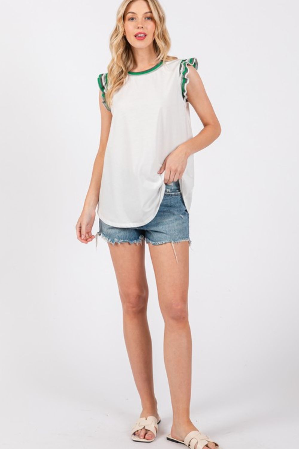 This sleeveless round neck top features a stylish contrast striped design for a modern and eye-catching look. The contrast stripes add a dynamic element to the top, creating a visually pleasing and trendy style. The sleeveless silhouette is perfect for warm weather, making it a versatile piece for your wardrobe. The round neck design adds a classic touch, allowing for easy layering with jackets or cardigans. Perfect for a casual day out or a dressed-up ensemble, this top can be paired with a variety of bottoms for a chic outfit. Elevate your look with this fashionable and versatile contrast striped sleeveless top!