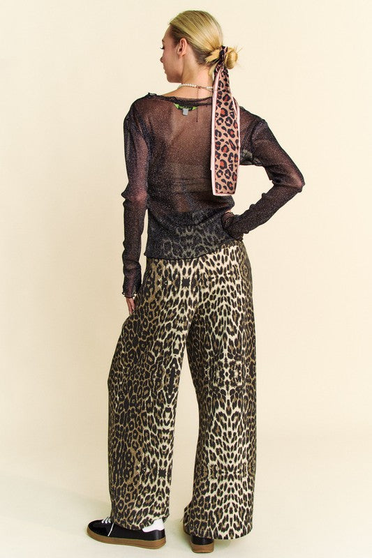 Davi & Dani Glitter Mesh Lettuce Hem Long Sleeve Top