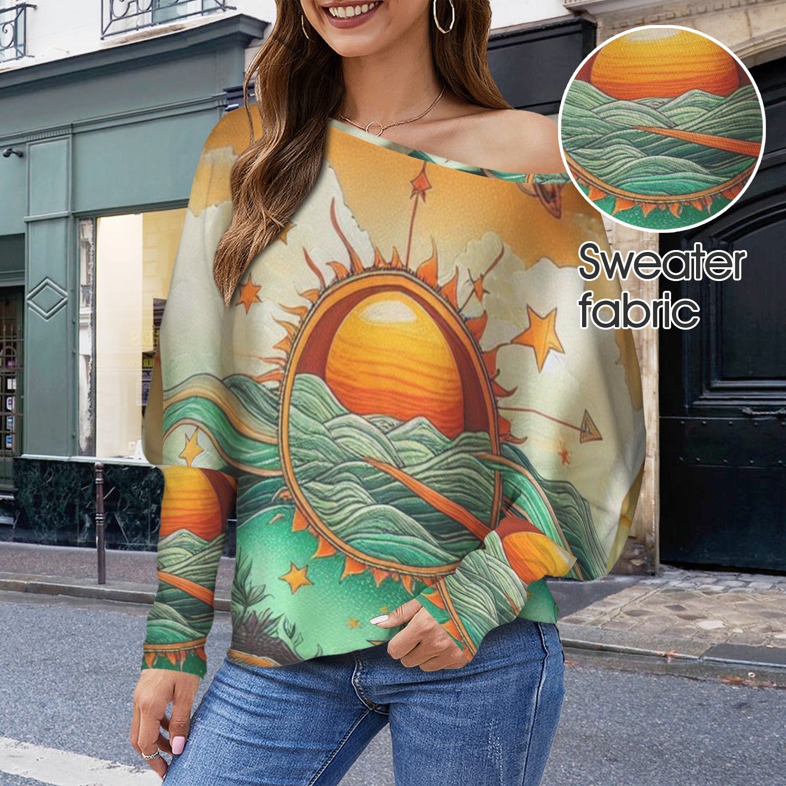 Designer (34) Pisces Casual Long Batwing Sleeve Off Shoulder Sweater