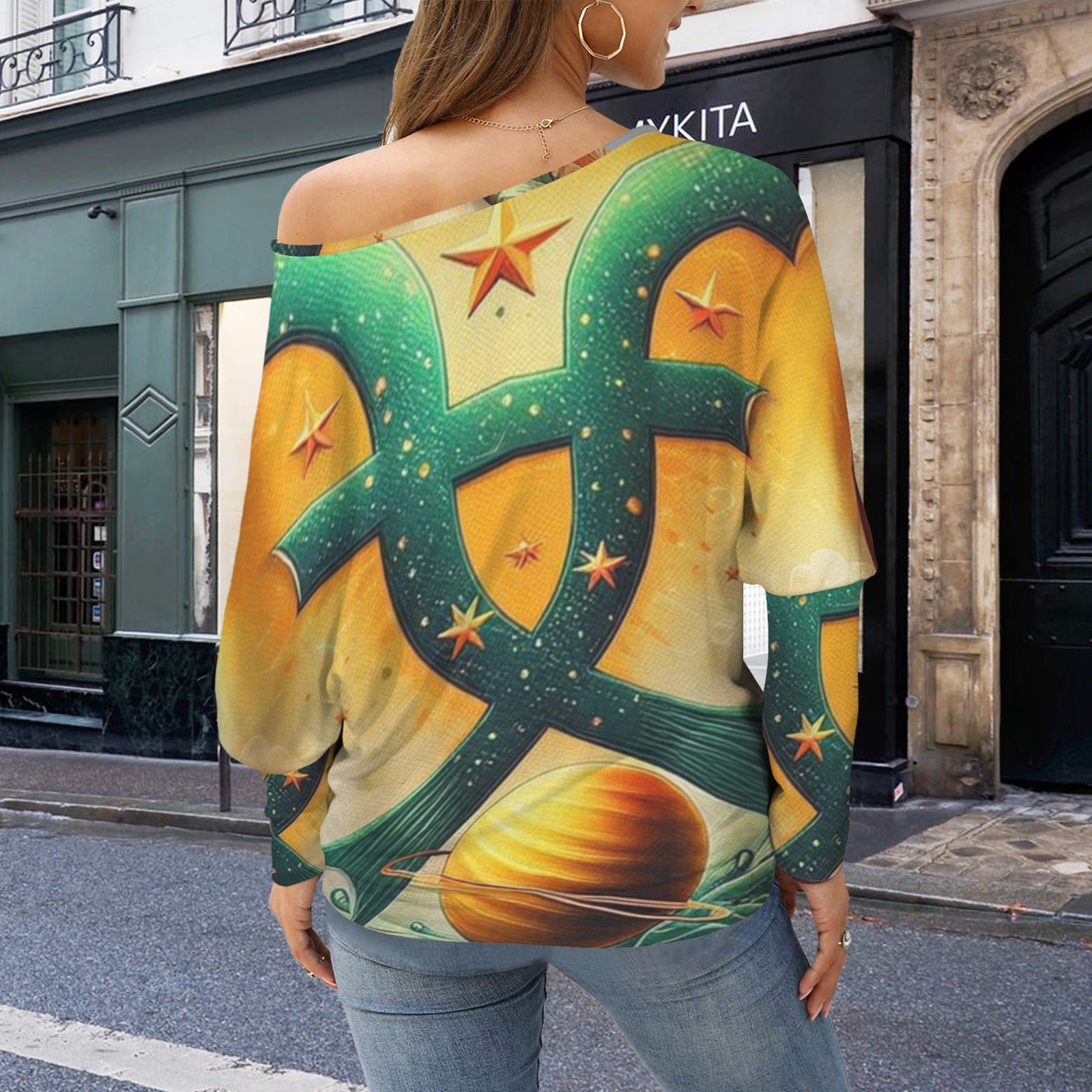 Designer (35) Pisces Casual Long Batwing Sleeve Off Shoulder Sweater