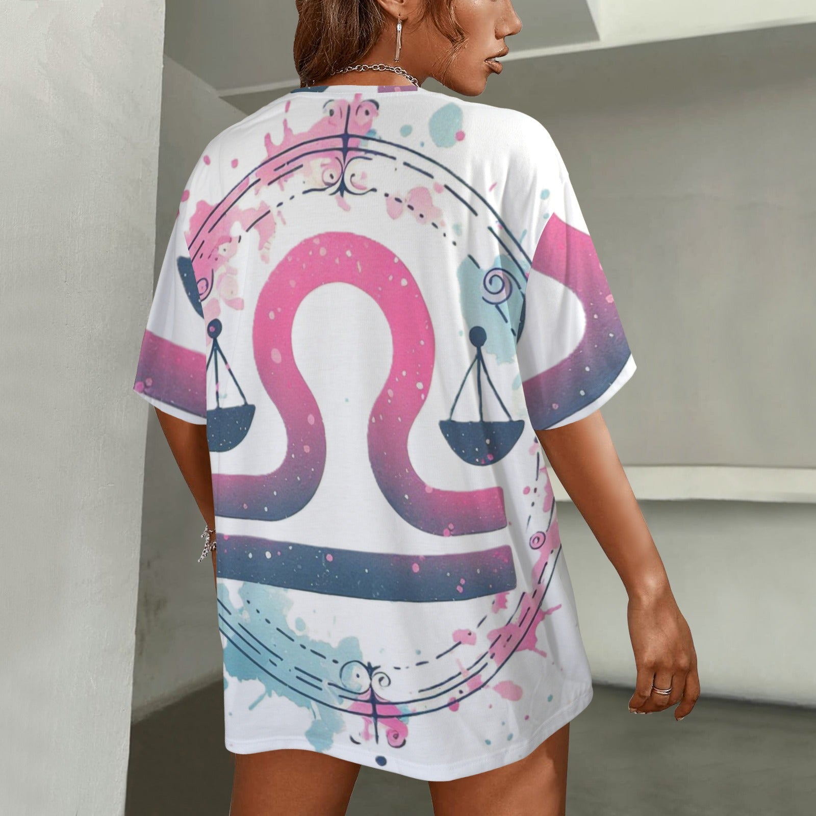 Libra Round Neck Loose T-Shirt (Inky Splatter) 3
