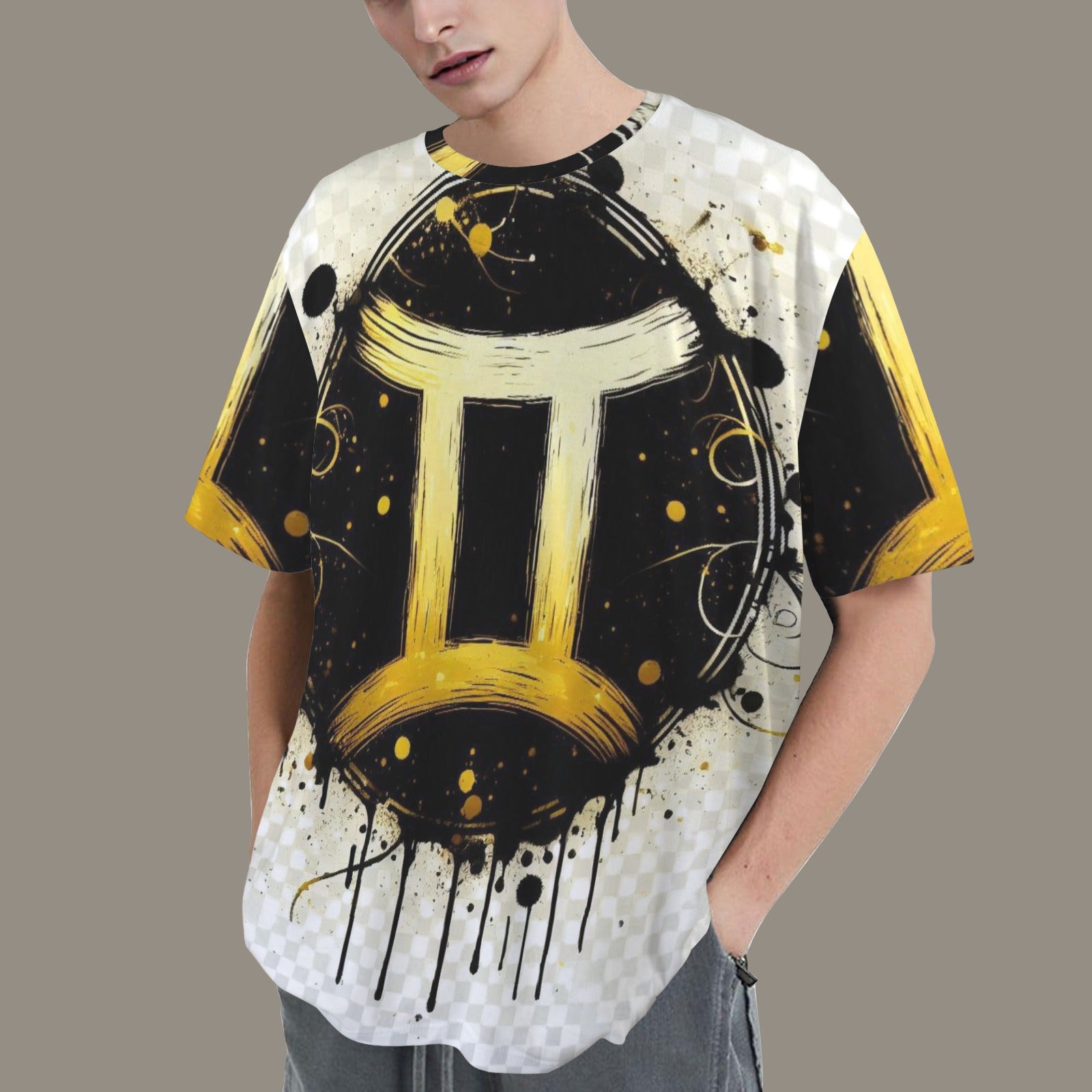 Gemini Round Neck Loose T-Shirt (Inky Splatter) 2