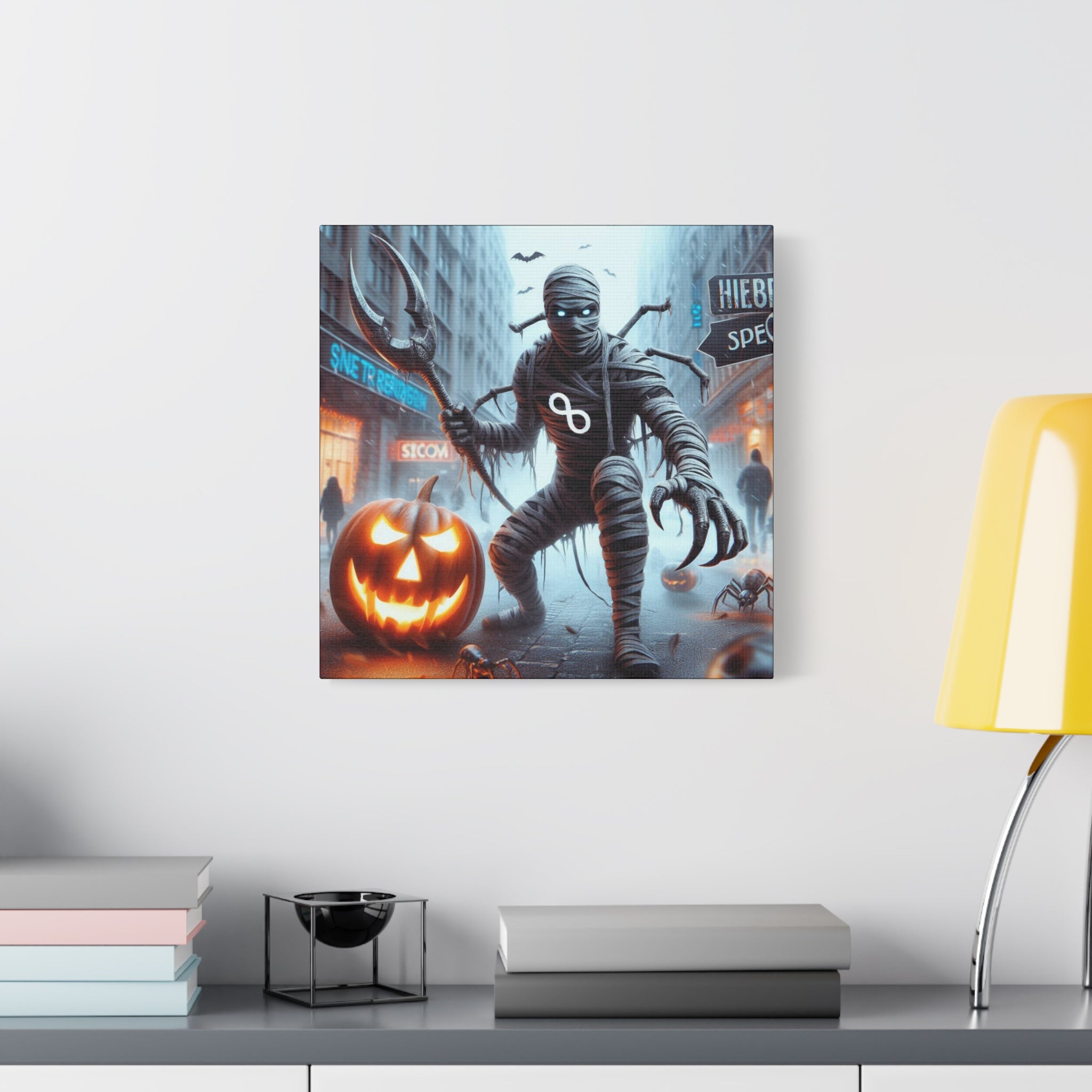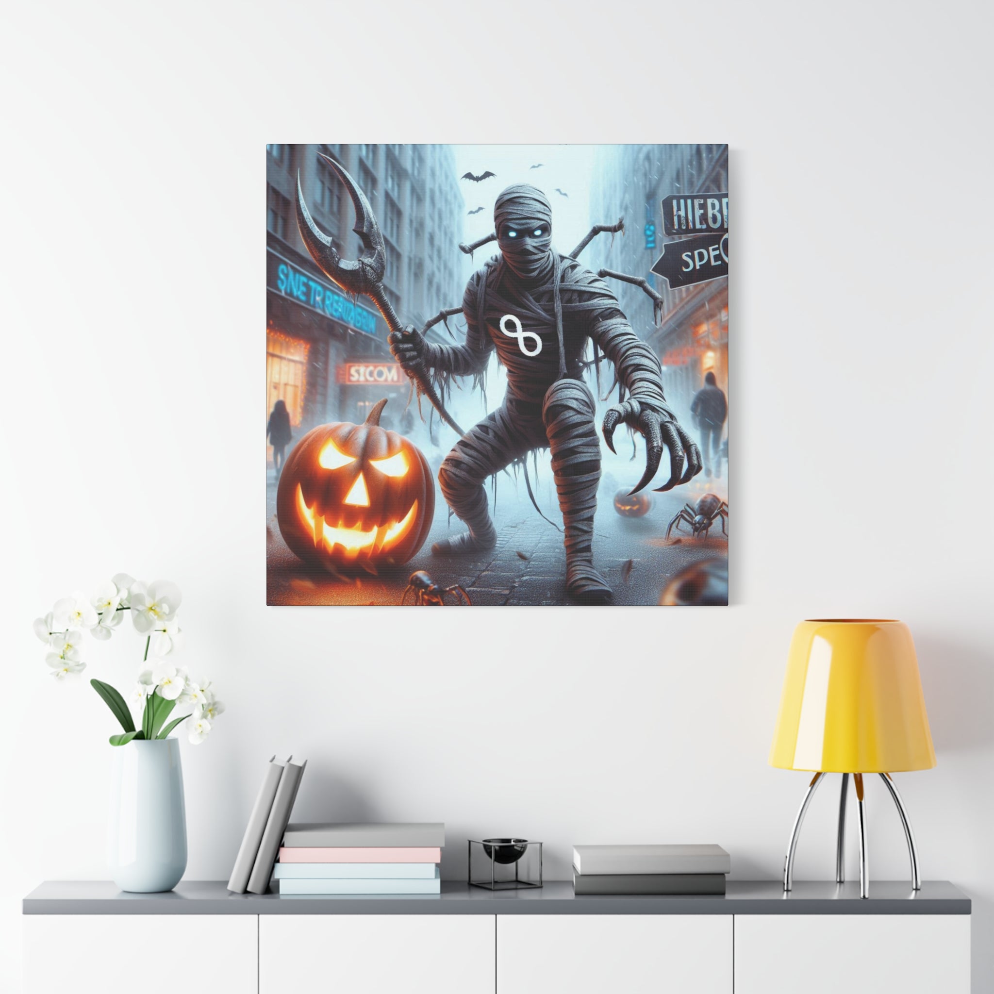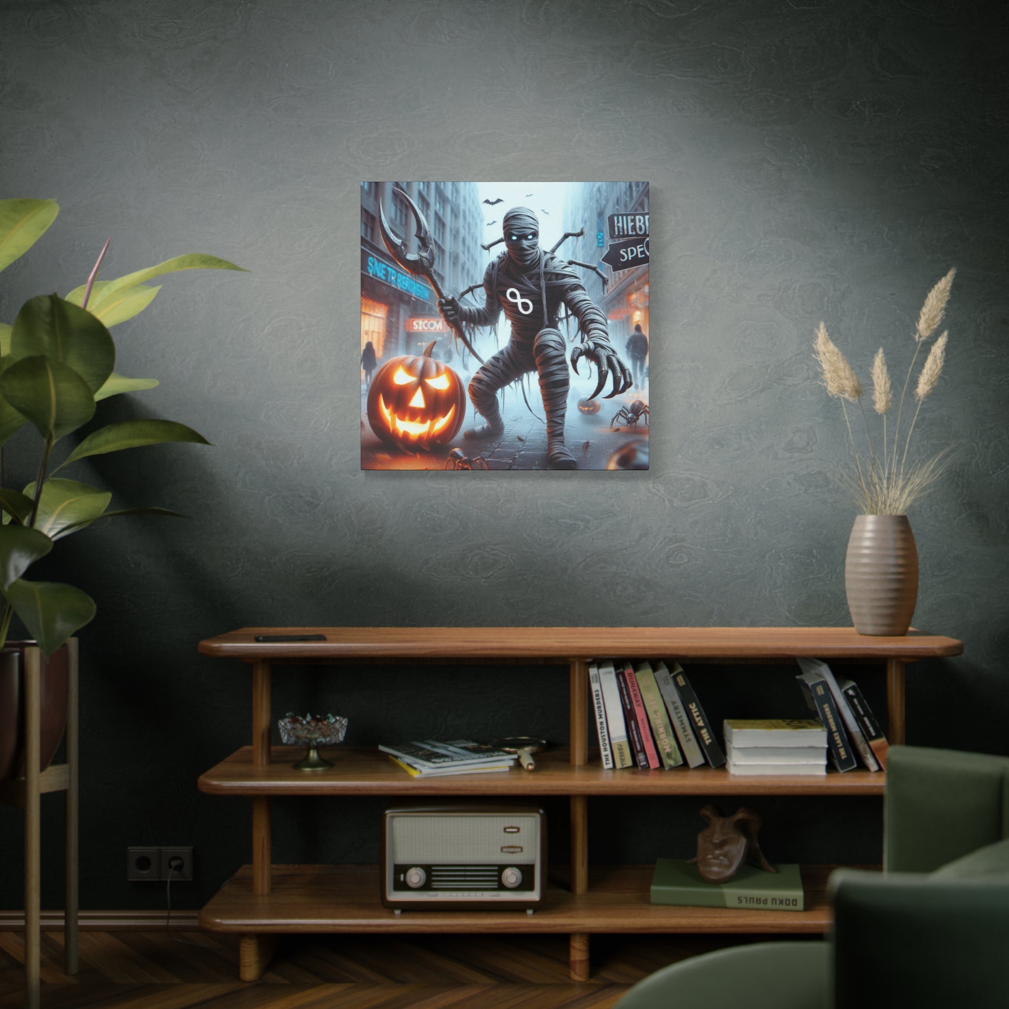 Transform your space with this stunning Matte Canvas that features an enchanting Halloween scene. Capturing the chills and thrills of the season, this artwork showcases a mysterious mummy amidst a foggy street, complemented by glowing pumpkins. Ideal for anyone wanting to infuse their home with a playful yet spooky vibe, this canvas print makes an excellent addition to your Halloween decorations or a perfect gift for the holiday enthusiast. Perfect for decorating living rooms, art studios, or kids' rooms, this piece is relevant during Halloween, fall celebrations, and themed parties, bringing captivating storytelling to your walls. Whether you're an art lover, a Halloween aficionado, or simply looking to refresh your decor, this canvas will resonate with your festive spirit and bring a touch of magic to your life.