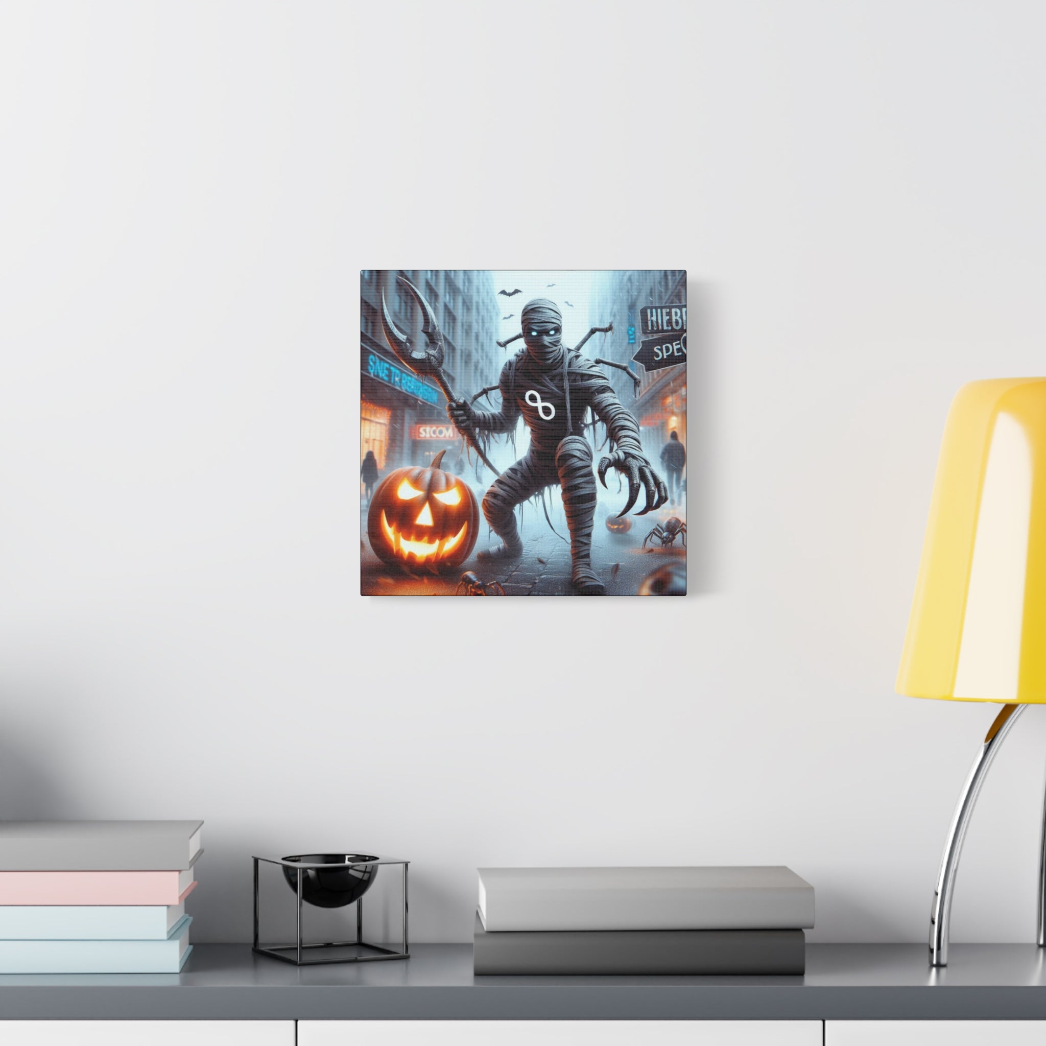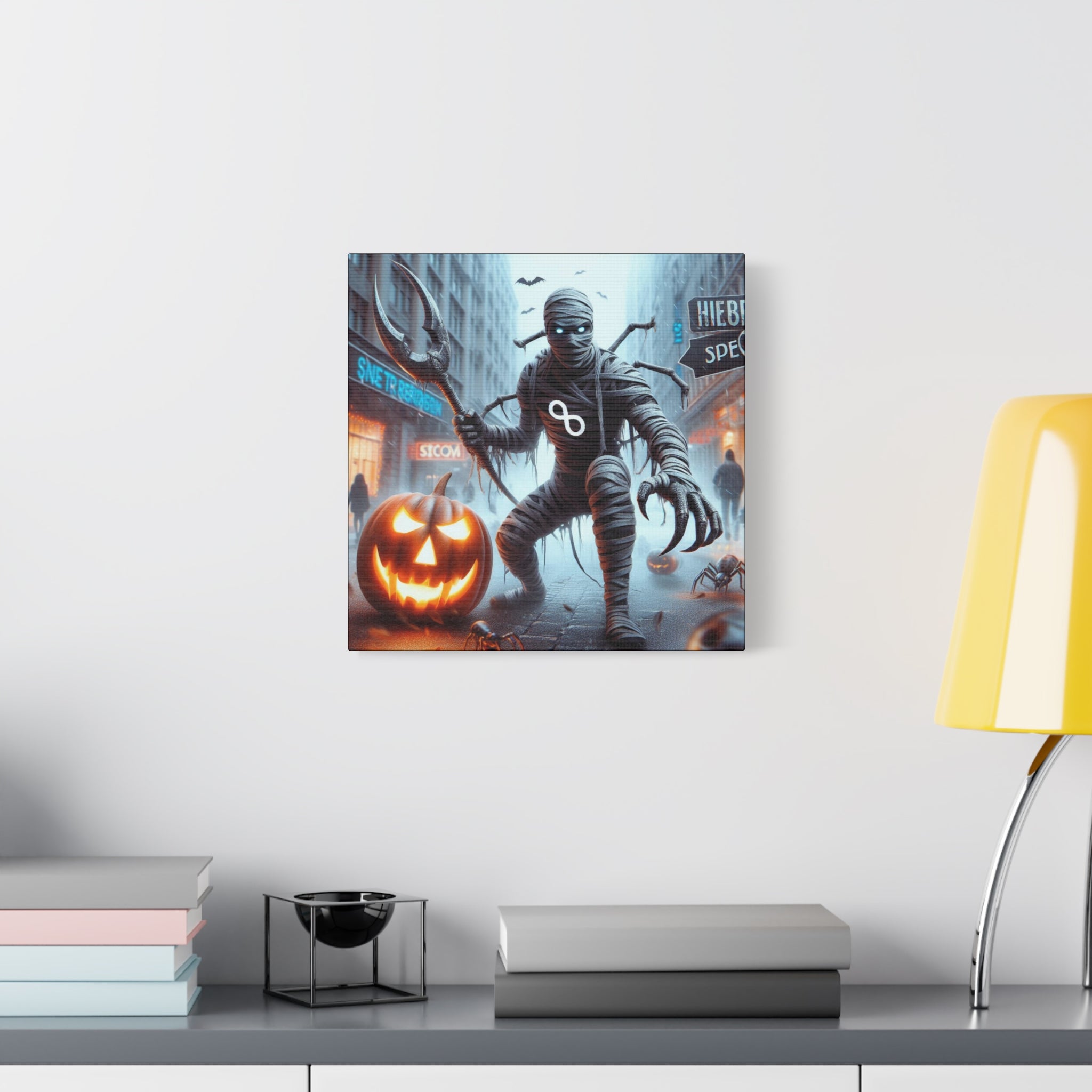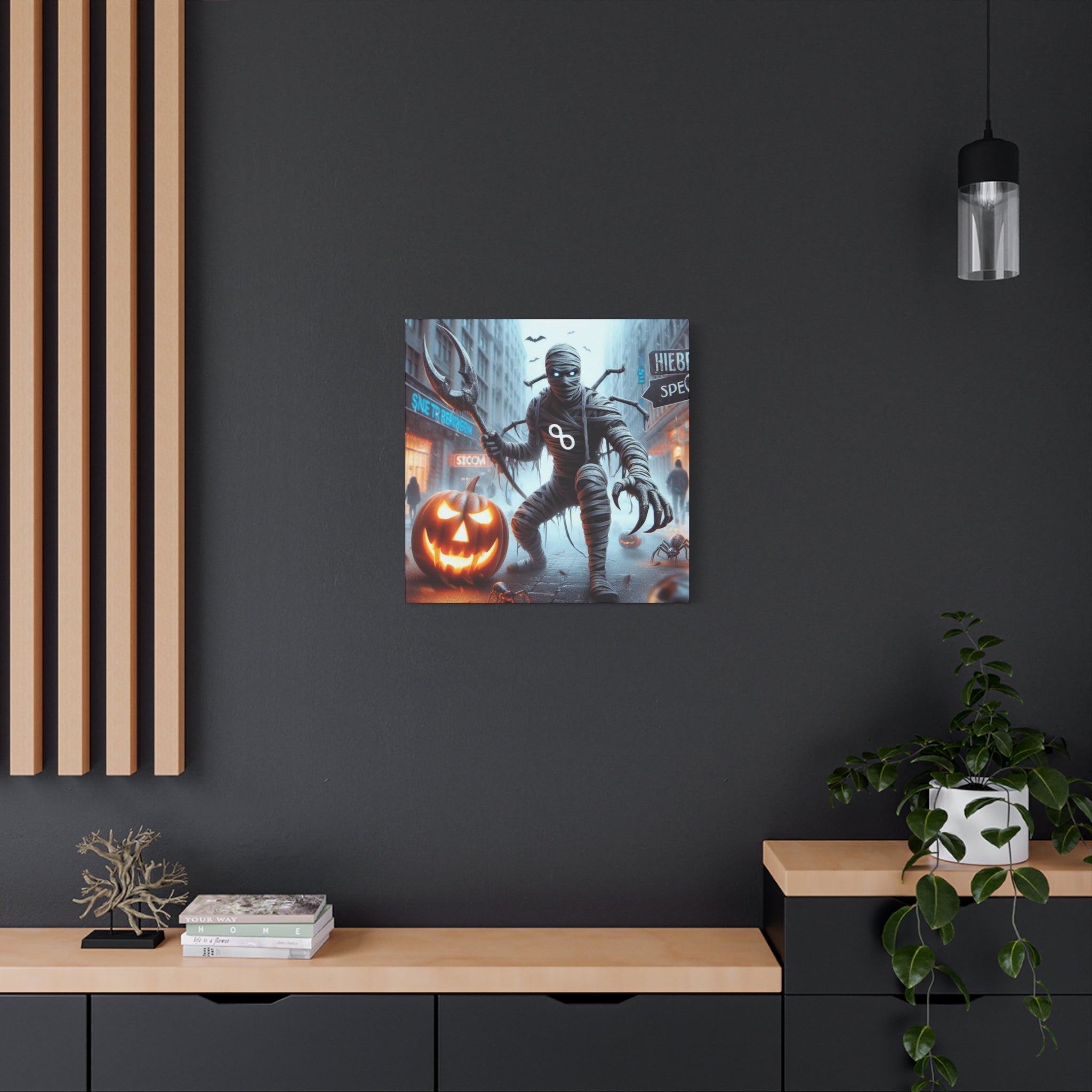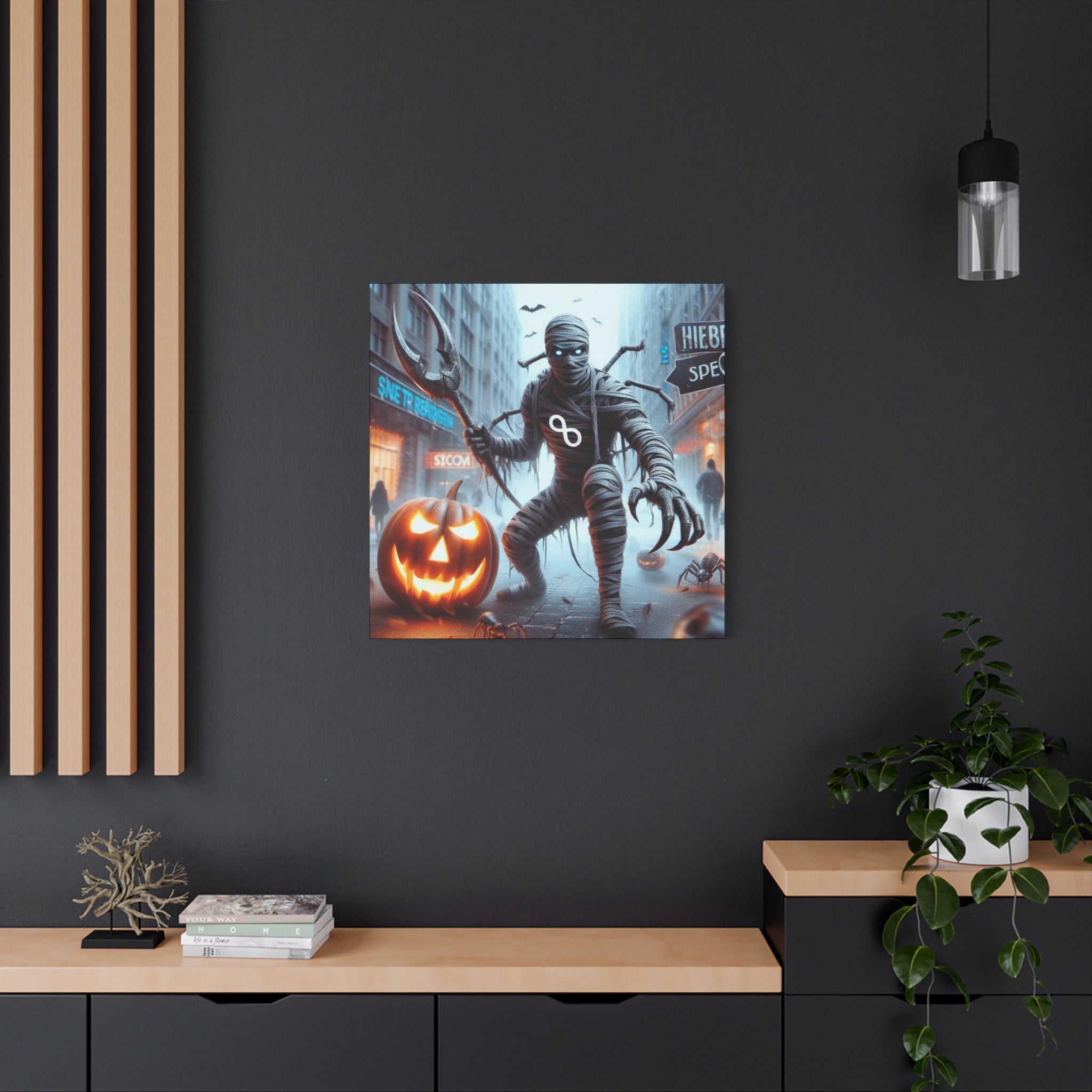 Transform your space with this stunning Matte Canvas that features an enchanting Halloween scene. Capturing the chills and thrills of the season, this artwork showcases a mysterious mummy amidst a foggy street, complemented by glowing pumpkins. Ideal for anyone wanting to infuse their home with a playful yet spooky vibe, this canvas print makes an excellent addition to your Halloween decorations or a perfect gift for the holiday enthusiast. Perfect for decorating living rooms, art studios, or kids' rooms, this piece is relevant during Halloween, fall celebrations, and themed parties, bringing captivating storytelling to your walls. Whether you're an art lover, a Halloween aficionado, or simply looking to refresh your decor, this canvas will resonate with your festive spirit and bring a touch of magic to your life.